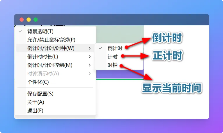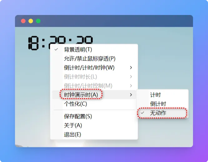 四、倒计时时间可以在右键菜单中选择预置时间或者自定义。