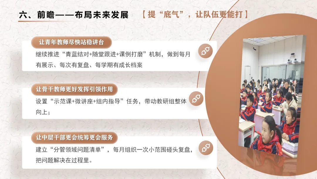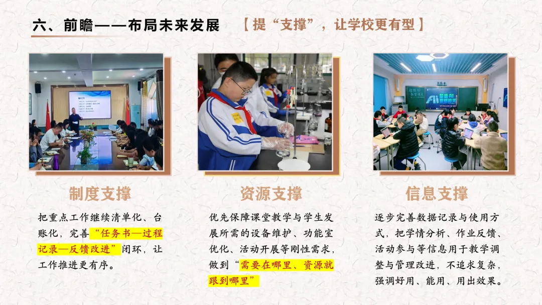 我们将继续把有限的时间和资源用在最关键的地方,对齐学生成长规律、课堂提质方向和学校特色建设。
