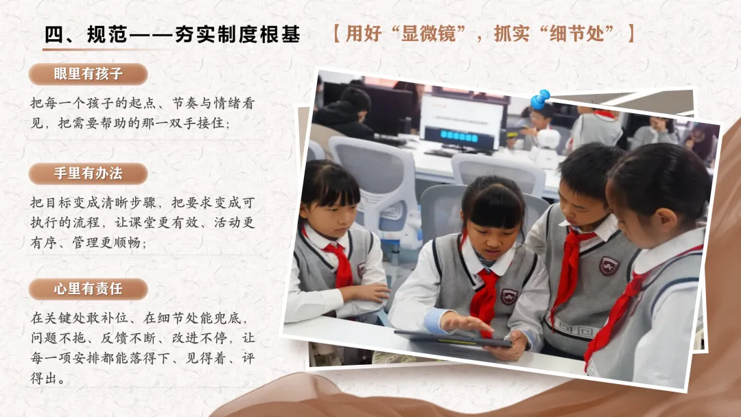 我们将关注学生学习习惯与方法指导,落实阅读积累、规范书写、错题整理等基础训练。良好的学习习惯和学习方法是学生取得优异成绩的重要保障。我们要让学生幻灯片14:规范——夯实制度根基(用好“显微镜”,抓实“细节处”)