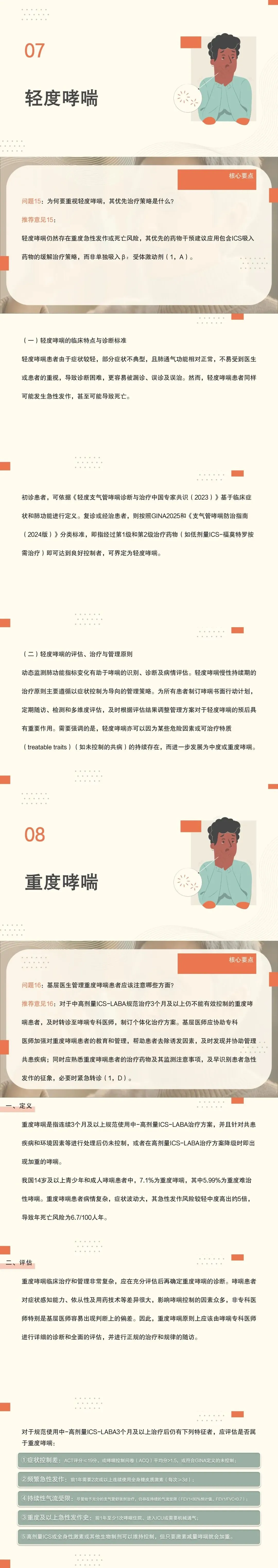15:轻度哮喘仍然存在重度急性发作或死亡风险,其优先的药物干预建议应用包含ICS吸入药物的缓解治疗策略,而非单独吸入β₂受体激动剂。