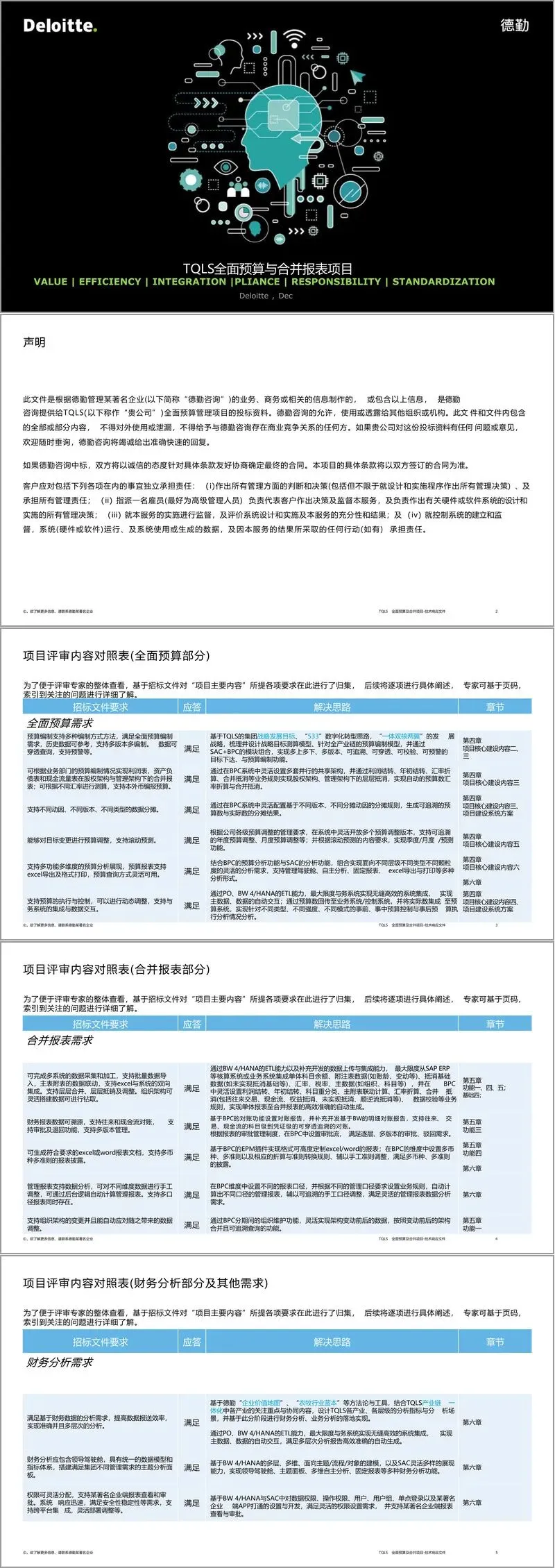 总体而言,德勤的全面预算与合并报表项目技术方案为集团企业财务数字化转型提供了完整的方法论和实践指南,不仅适用于TQLS集团,也对同类企业具有重要的参考价值。