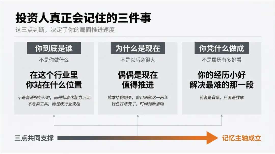 三、投资人真正会记住的,通常只有这三件事