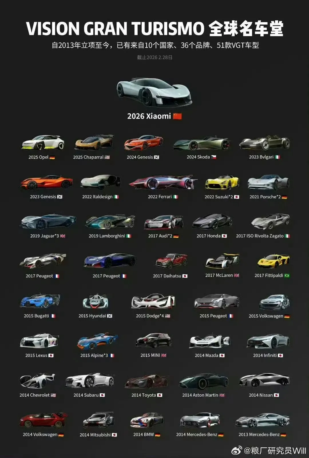 小米不仅是第一个参与的中国品牌,也是第一个以科技公司身份加入的,这牌面直接拉满,目前全球只有36个品牌51款VGT车型。