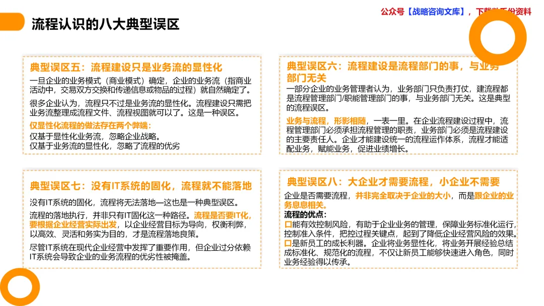 第三,根本性,是流程再造的底层逻辑。开展流程再造,必须从根本上思考两个核心问题:我们为什么要做流程再造?流程再造要解决的根本问题是什么?只有从根本上回归业务本质,才能抛开原有业务流程的规则和假设限制,构建真正能解决问题的流程体系。华为的每一次流程再造,都始终回归 “以客户为中心” 的业务本质,所有的流程重构,都是为了更好地满足客户需求,更好地实现客户价值,而非为了内部管控方便,或是为了迎合管理者的个人偏好。很多企业的流程再造,从一开始就偏离了根本方向,把 “加强管控”“规避风险” 作为核心目标,最终构建的流程只会让业务运作更加僵化,让一线团队束手束脚,完全背离了流程再造的初衷。只有从根本上回归业务本质,流程再造才能真正为业务增长赋能。