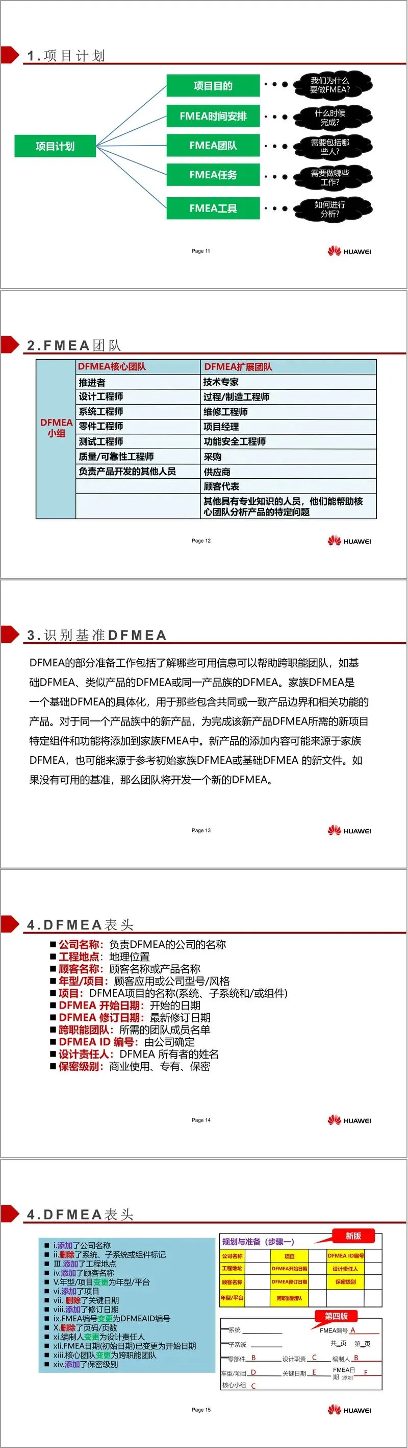 培训开篇聚焦策划和准备环节,这是 FMEA 有效实施的基础。此阶段需明确项目范围、组建跨职能团队,明确成员职责与分工,同时收集相关资料,包括产品设计图纸、工艺文件、历史失效数据等,还要确定评判风险的准则与标准,为后续工作搭建框架,确保每一步操作都有明确依据。