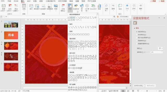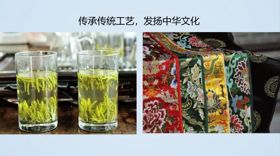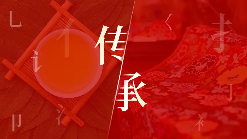 为了在演讲过程中让观众印象深刻,我们可以选择将两项内容进行融合并且作为背景来突出我们这一页的主题——传承: