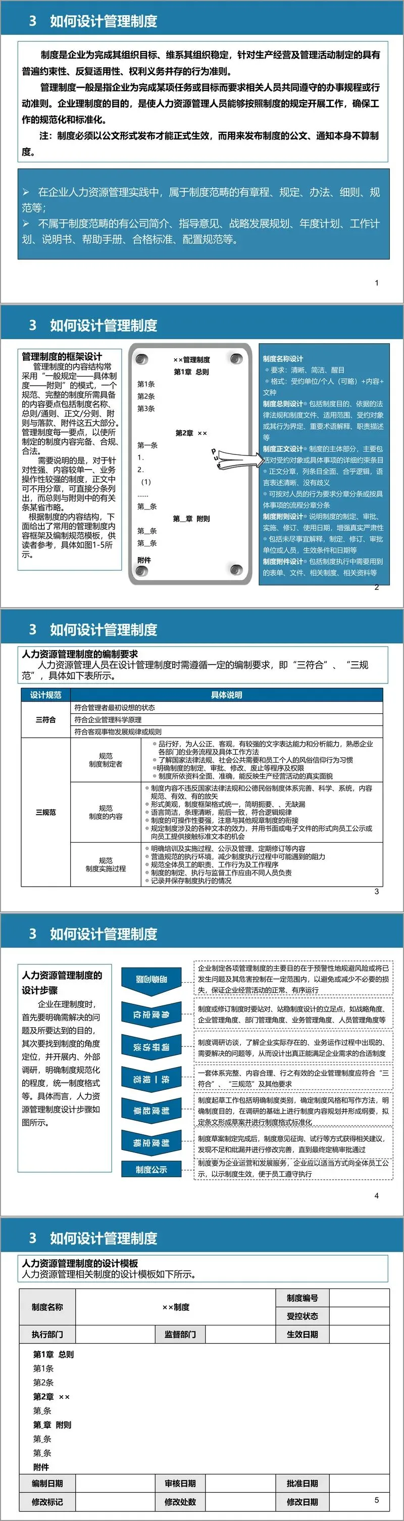 管理制度设计强调 “三符合”“三规范” 原则,框架采用 “总则 — 正文 — 附则” 模式,明确制度名称、适用范围、职责分工、实施流程等核心要素。设计需经过明确问题、调研访谈、起草、定稿、公示等步骤,确保制度合法合规、贴合企业实际且具备可操作性。