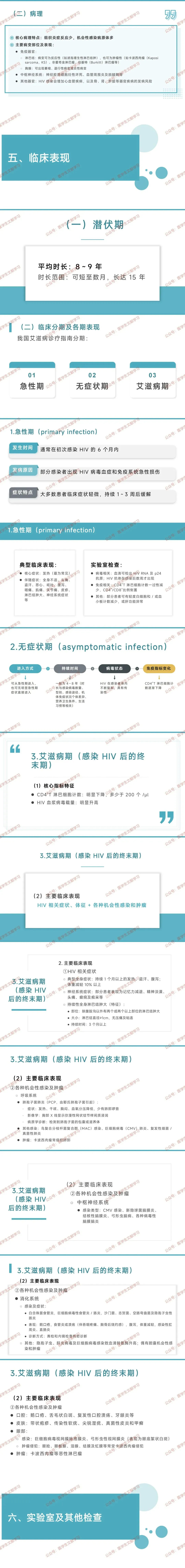 - 疾病结局:晚期易并发严重机会性感染与肿瘤;经有效治疗可转为可控制的慢性病,但合并症仍影响预后与生存质量。