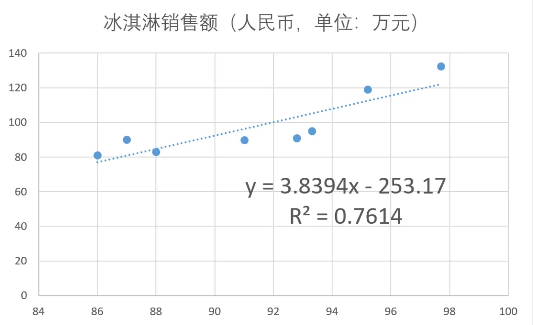 若斜率为正,说明温度上升时销售额增加;若为负,则说明存在反向关系。