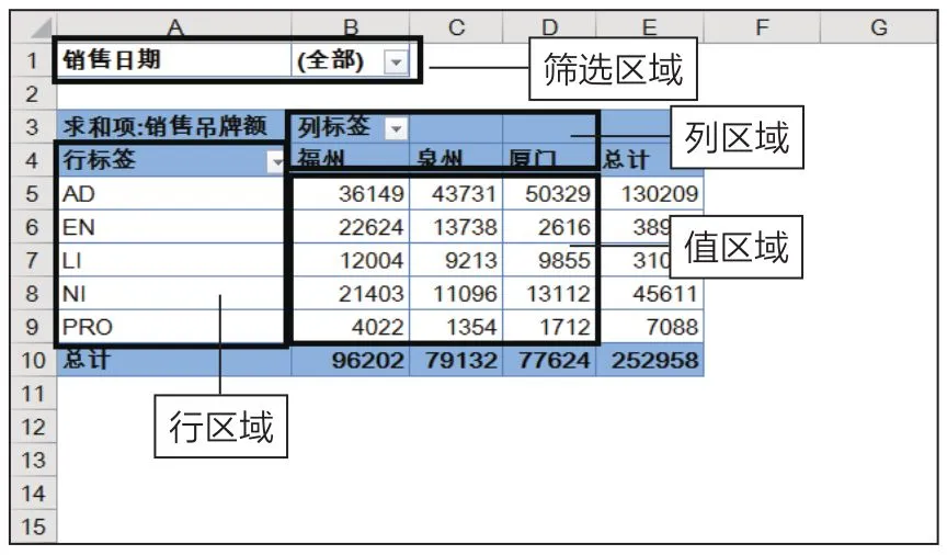 从结构上看,数据透视表分为 4 个部分。