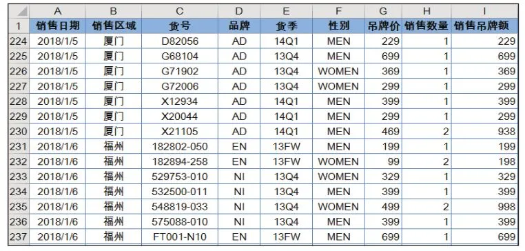 下面这张图为某公司 2018 年 1 月的销售明细流水账。