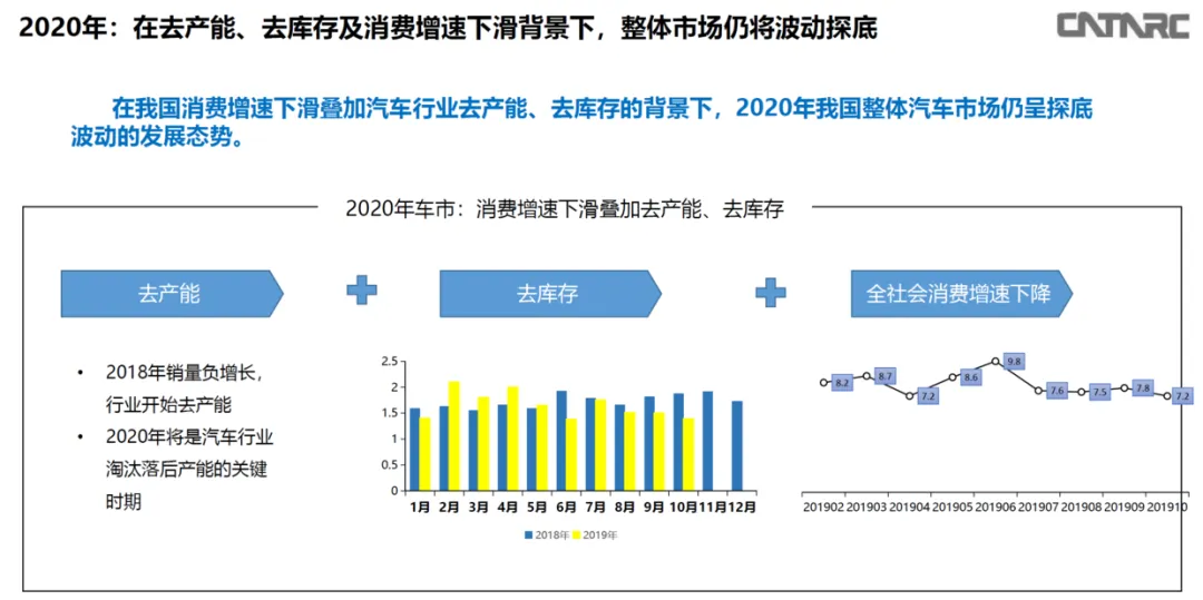 上面这页 PPT 的页标题:2020 在去产能、去库存及消费增速下滑背景下,整体市场仍将波动探底。
