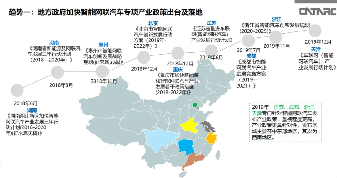 上面这页 PPT 的页标题,趋势一:地方政府加快智能网联汽车专项产业政策出台及落地。