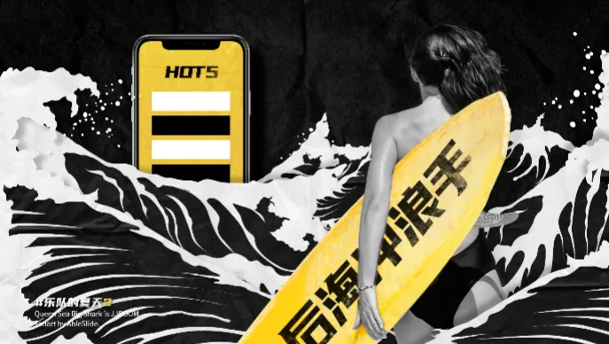 可以用一些修饰的植物,放在前景当中,它们本身是融入环境的,只要动画不抢戏,它们是不会太起眼的。也就是主要的动画,和其他修饰类的动画。结合自己的作品画面,想一想这个画面动起来能产生什么?如果你有天马行空的想法,就可以做成超现实主义的的设计。仔细观察下这张 Gif 图,除了浪花,当动起来的时候,浪与浪之间拍打动作也是会有的画面感。所以我把后面的几个小浪,做了不一样的动画处理——飞上来然后拍打下去。通过添加辅助元素的动画让原来的画面感更加丰富,场景也更加还原。如何通过动画增加画面的故事感,进行情节化或故事化渲染?换句话说,就是从开始制造悬念让观众不知道这是什么,直到最后才揭晓答案。