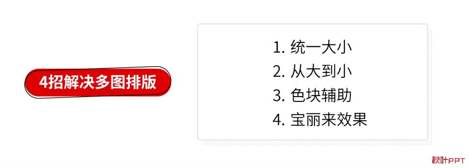 简单回顾总结一下,如何解决 PPT 多图片排版?有 4 个招式可以使用: