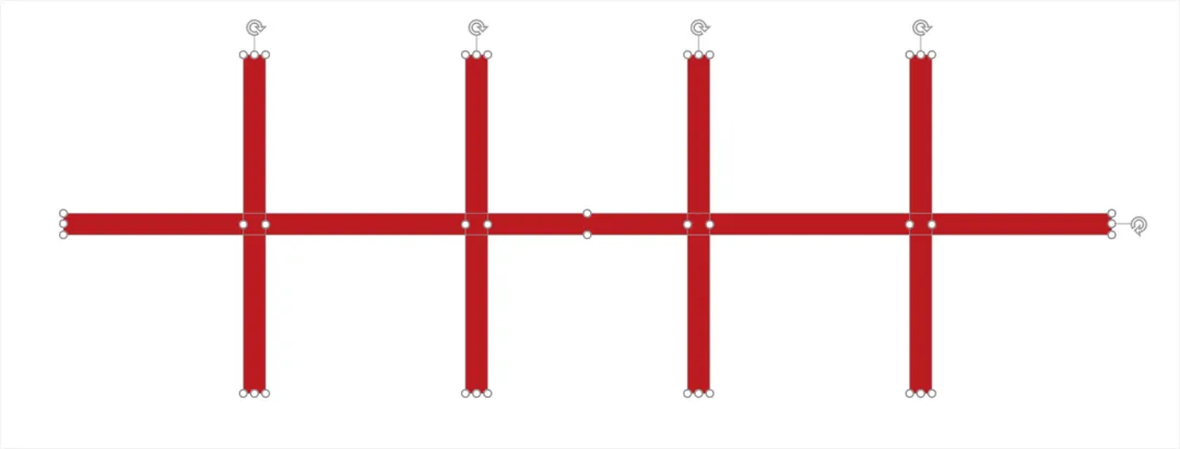 可以另外插入等宽的矩形条作为参照物,同时利用好对齐工具就可以了。