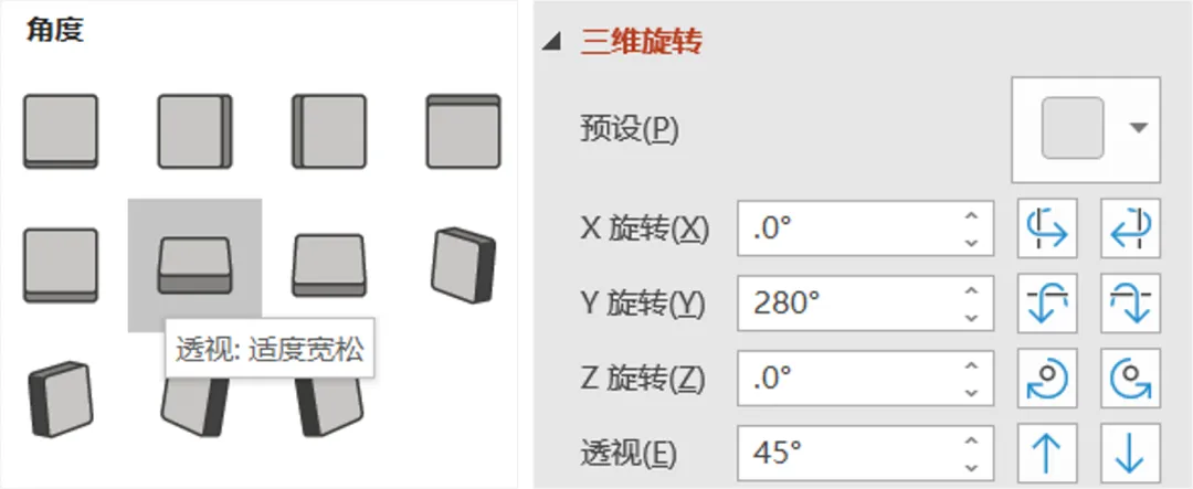 如果将页面上的文字和形状,加了平行透视后,立马就有了动感:
