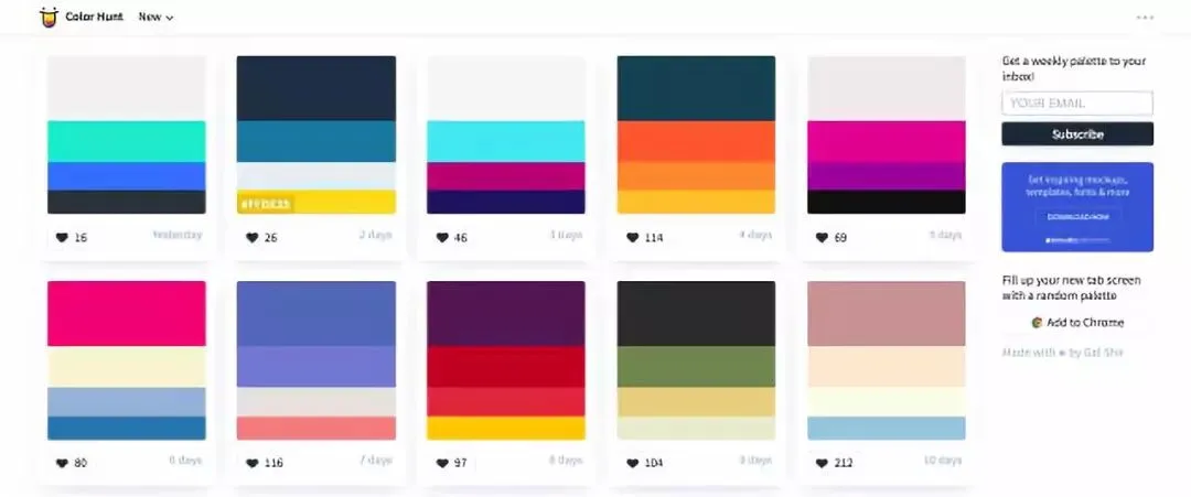 首先我们可以打开一个配色网站,比如说:http://www.colorhunt.co/