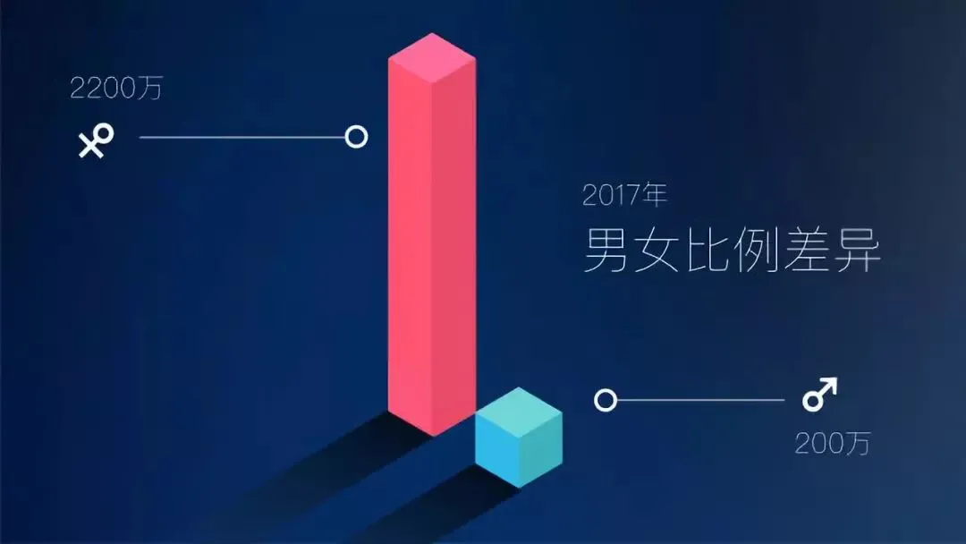 比如说,我们想要绘制一个表达男女比例构成的图表。初始图表你可以这样制作: