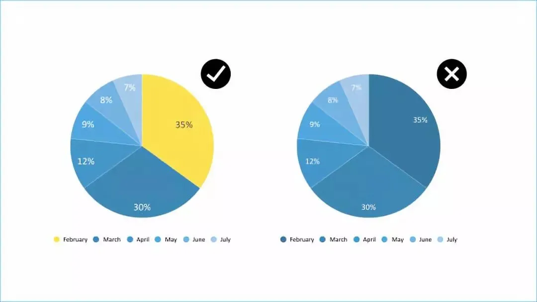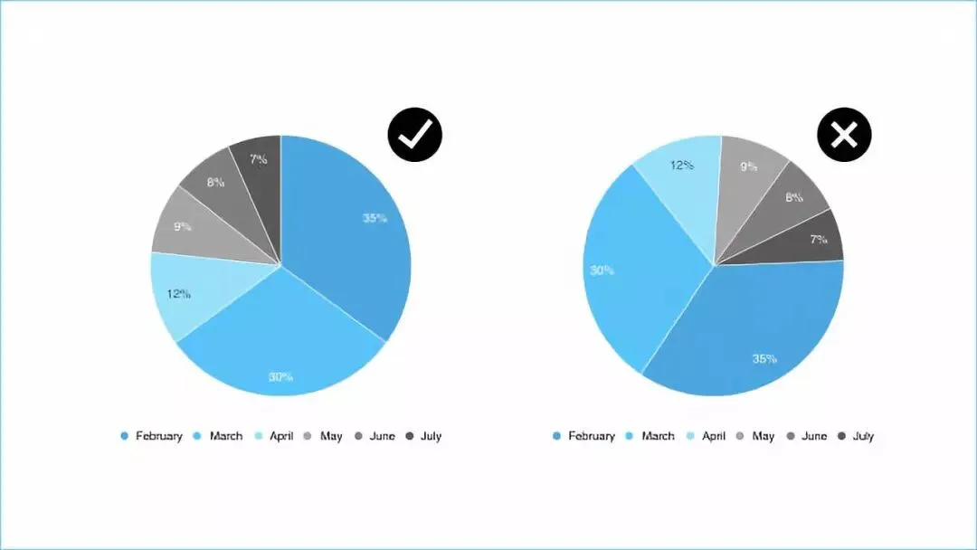 饼图的绘制要符合人眼的阅读习惯,请遵循两个原则:
