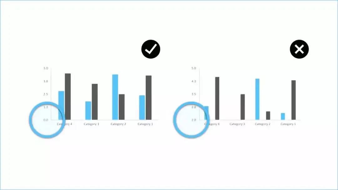 图表的纵向坐标要坚持从 0 开始,可上下浮动,但不要擅自修改为其他数值。