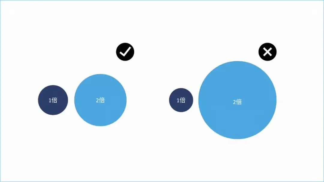 使用面积对比图时,需要 1:2、1:3 等比例说明对比现状时,切忌过于夸张化制图,要使用面积等比缩放,保持图标准确性。