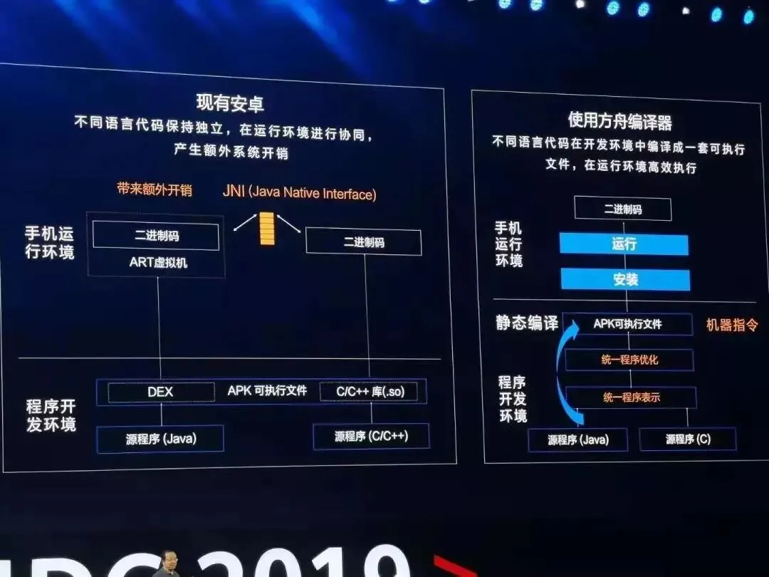 不过不得不承认,再怎么优化,多了编译的过程怎么都没省略编译直接运行来的快。方舟编译器的作用就是去掉这个编译的过程,让程序直接运行在操作系统上。