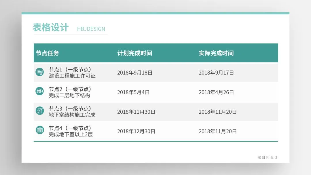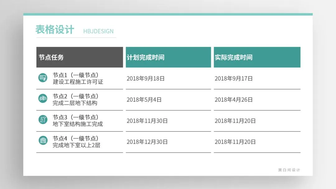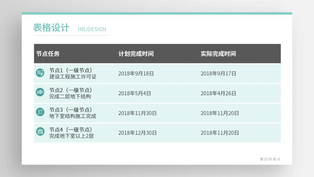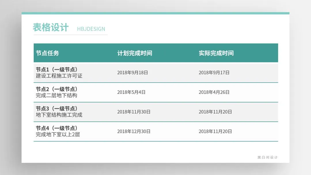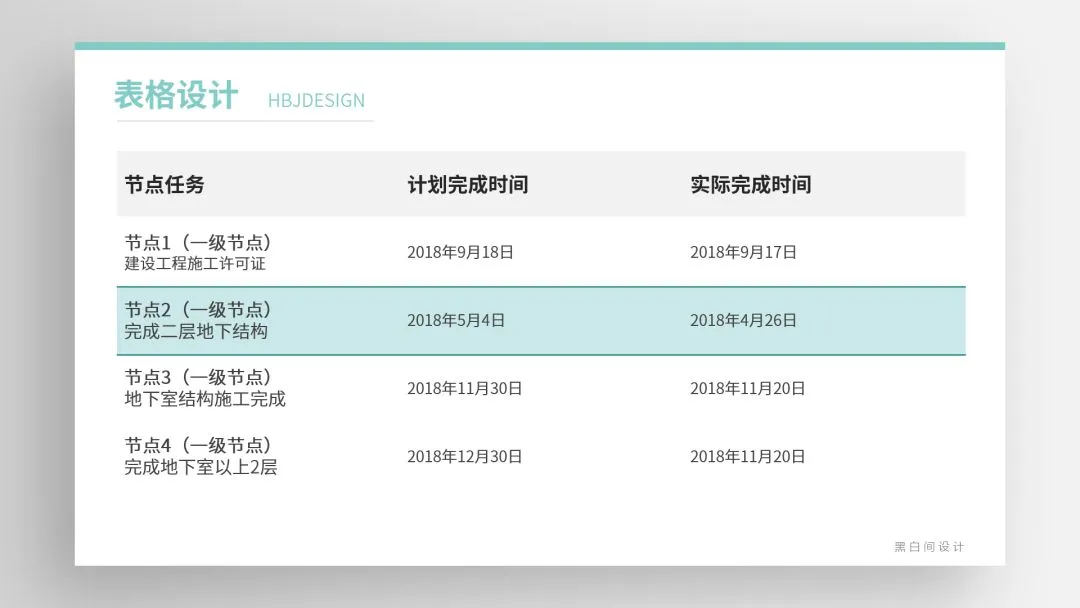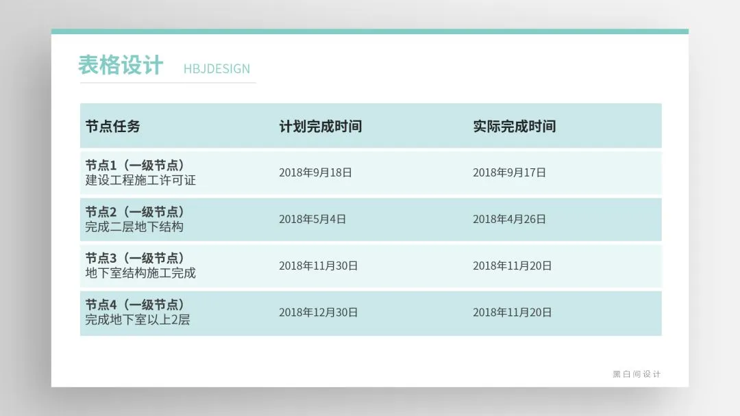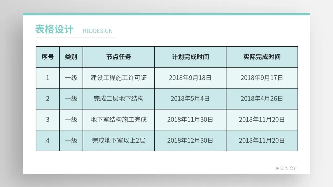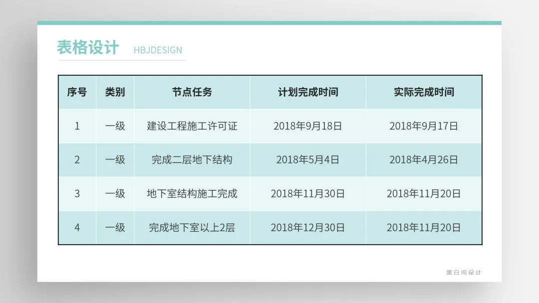 ❷ 通过底色的变化创造易读的表格,内部底色易浅不宜深,标题若用深色底文字需反白。