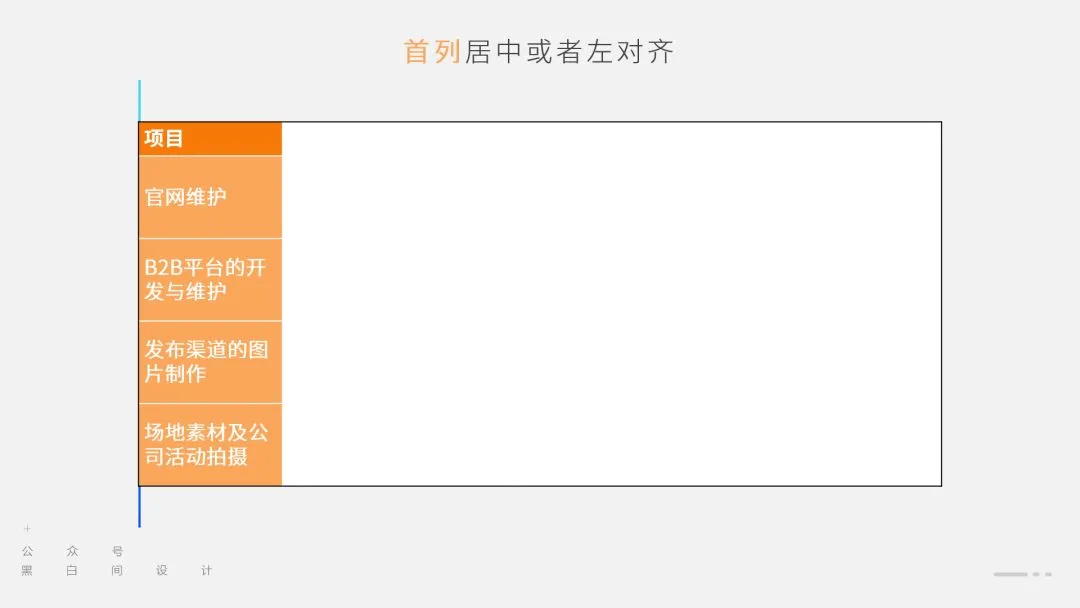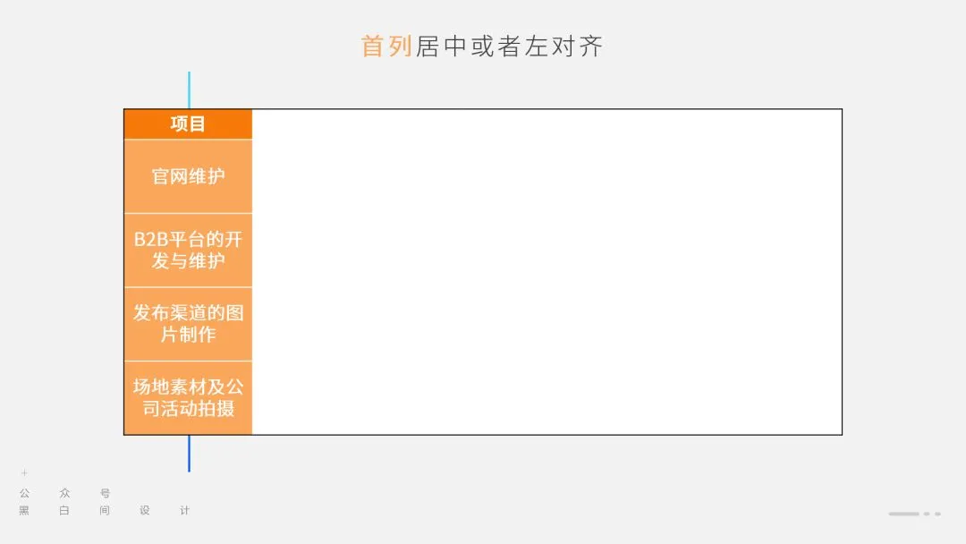 而在 PPT 里,我们不需要那么冗杂的信息分类,可以尝试将首列文字与描述文字融合在一起,简化表格。
