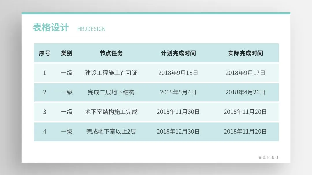 为表格添加这种间隔式的浅色填充,让表格本身成为一种规律重复的设计,也让表格看起来不那么呆板。