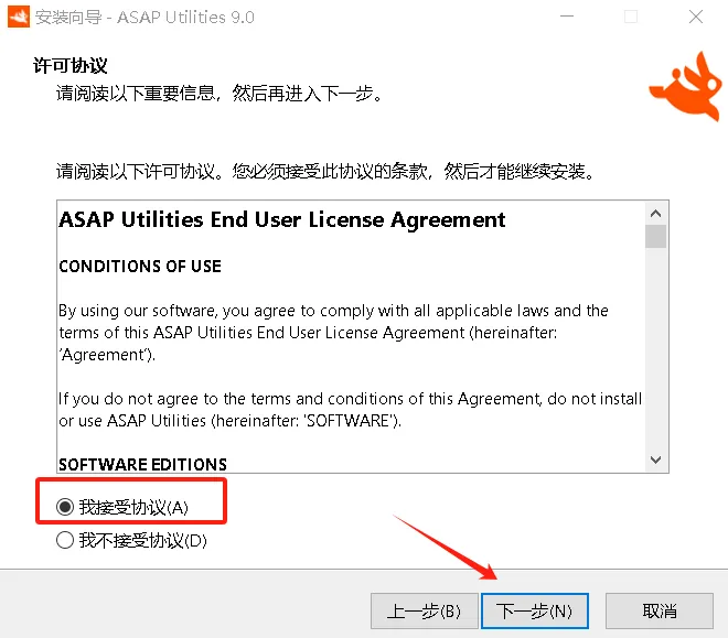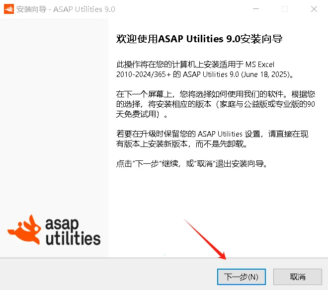 2、双击或以管理员身份运行“ASAP Utilities Free v9.0.exe“文件,按提示步骤进行安装