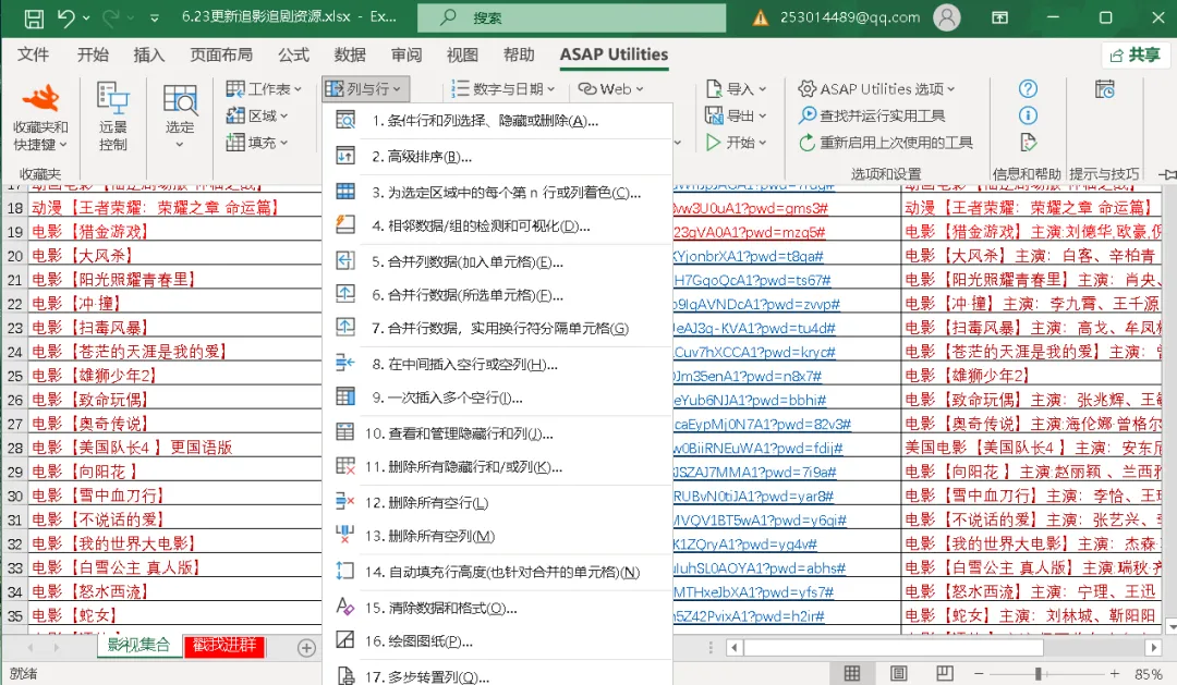 以上只是这款插件众多功能中的一部分,更多实用功能等待大家亲自去探索。如果你经常使用Excel处理数据,但又苦于操作繁琐、效率低下,那么ASAP Utilities绝对值得你一试!有需要的小伙伴可以在文末获取链接进行体验。