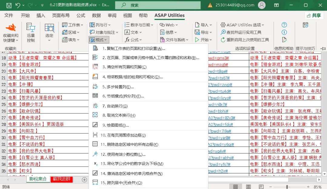 工作表管理:如果你像我一样最近在整理大量资源,面对众多工作表和繁杂数据时,ASAP Utilities可以帮你一次性快速重命名多个工作表,一键删除所有空表格,还能一次性打印多个工作表,极大地简化了操作流程。