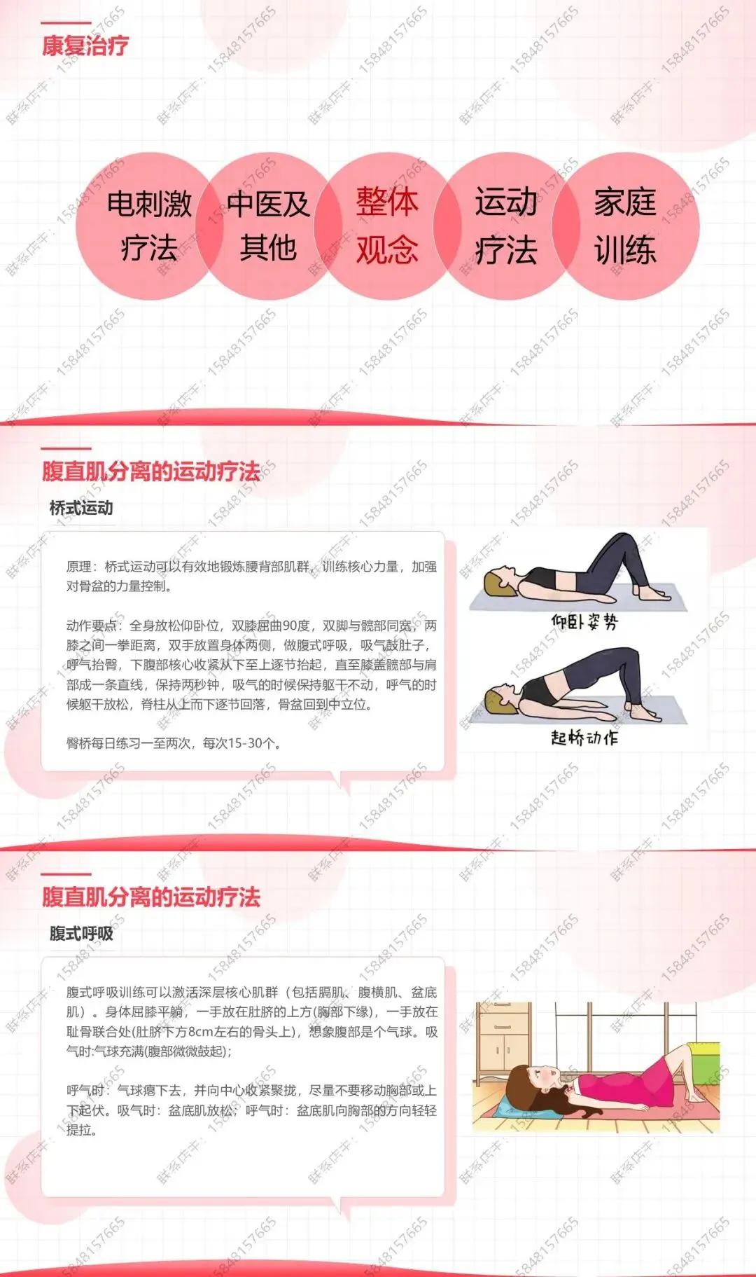 我们可以通过在家进行运动疗法来改善腹直肌分离现象。