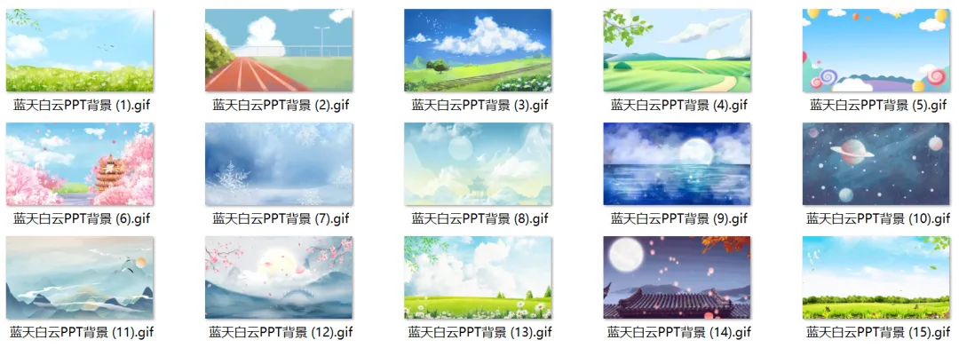 做课件、班会、工作总结、旅行策划,一用上这种会动的蓝天白云,整个 PPT 瞬间干净、清爽、高级,看着就舒服! 淡淡的云朵慢慢飘,治愈又大气,不抢字、不刺眼,学生、老师、领导都爱这种风格。很多人找了半天都找不到高清、无水印、还流畅的动态图,今天我直接给你们整理好一整套蓝天白云动态 PPT 背景。 点开就能用!以上,就是今天分享给大家的PPT模板部分内容预览图,完整内容大家领取后慢慢欣赏吧。