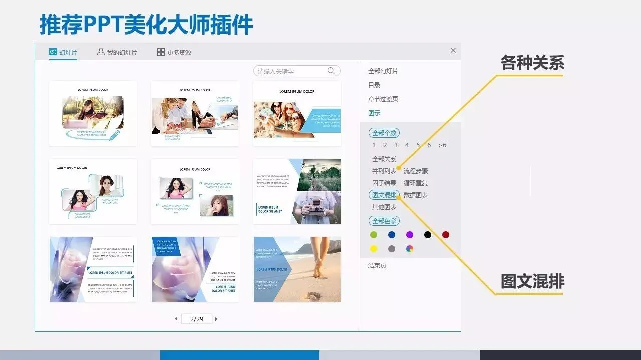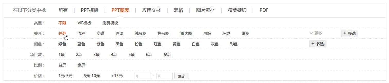 在稻壳儿网站里面还有一个神奇的分类,可以按照关系和关系项查找图表模板!
