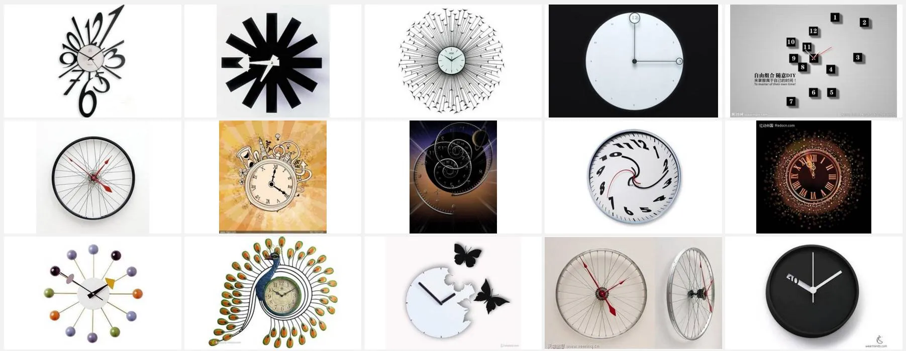 我搜的是“创意钟表”和“简约钟表”