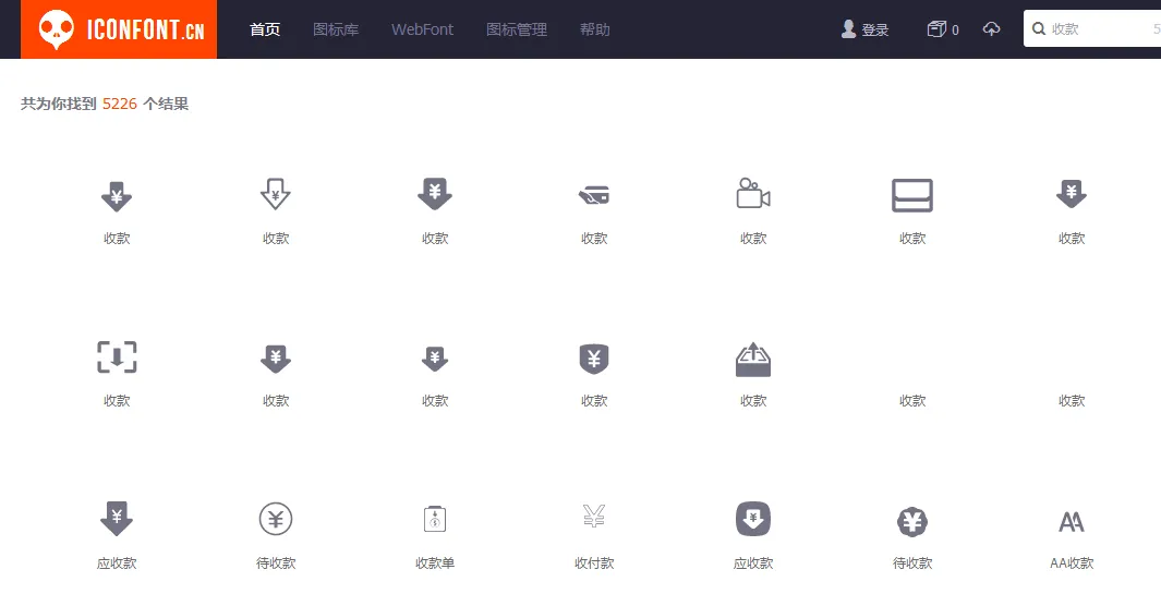 第二个找图标的网站是阿里做的,也非常好用:www.iconfont.cn