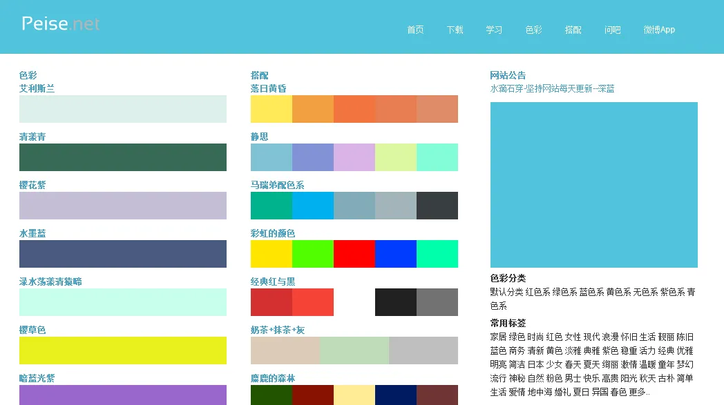 推荐一个好记的配色网站:www.peise.net