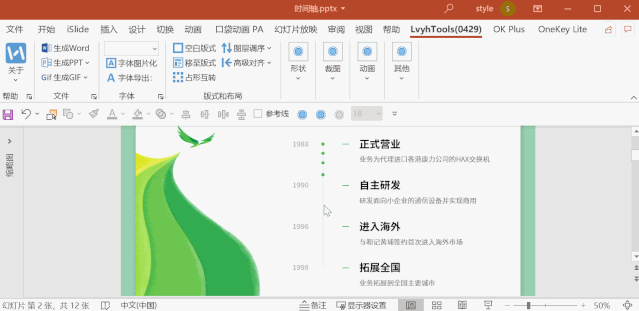 除此之外,给大家推荐过的 iSlide 插件,里面也提供了好多时间轴样式,直接点击插入,修改文字就能使用。