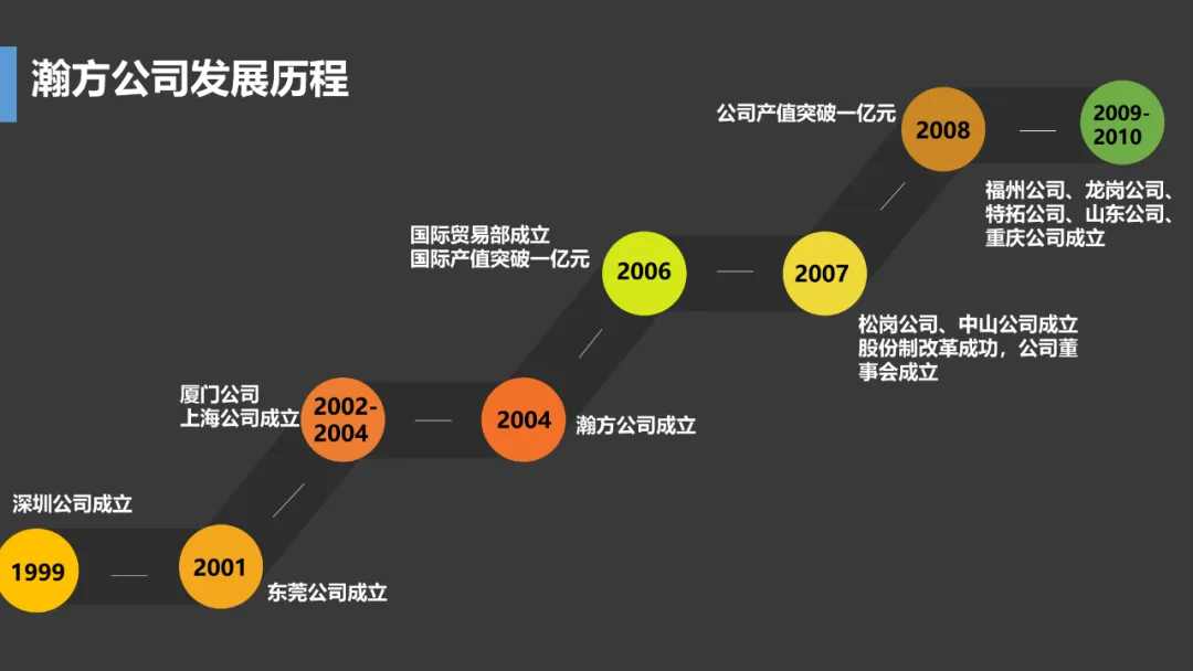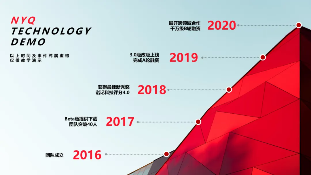 是的,在常规时间轴的基础上,很多发布会 PPT 的时间轴页就有做过美化。