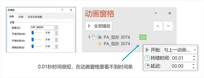 现在为其添加轮子动画和陀螺旋动画,并让陀螺旋动画与轮子动画同时开始,持续时间为0.01秒(直接输入0即可)。