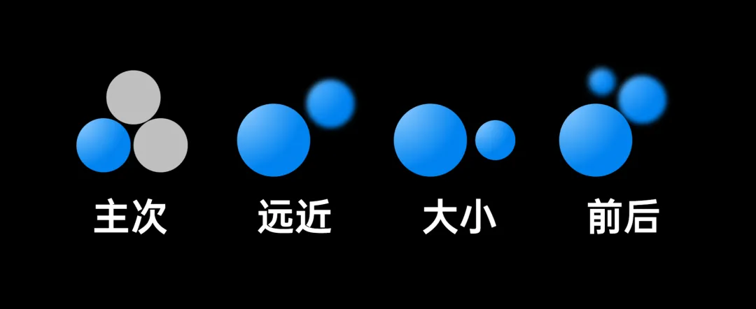 这个主次关系,除了文字,还可以有色块的颜色和大小。