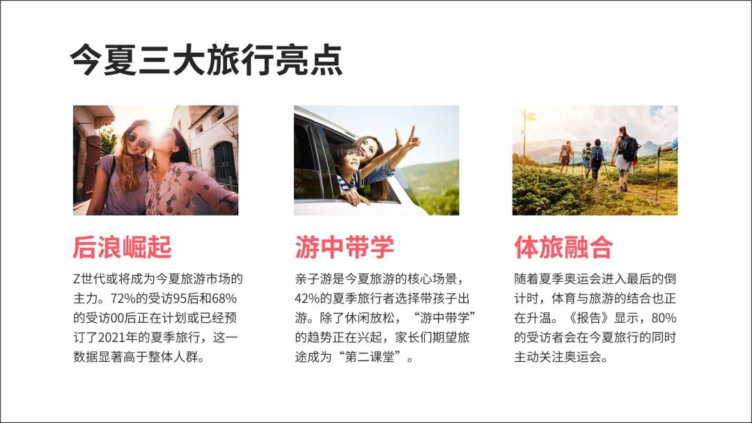 文字的跳跃率指的是标题,小标题,正文之间的字号比例。基本上所有 PPT 都会用到,使用范围很广。