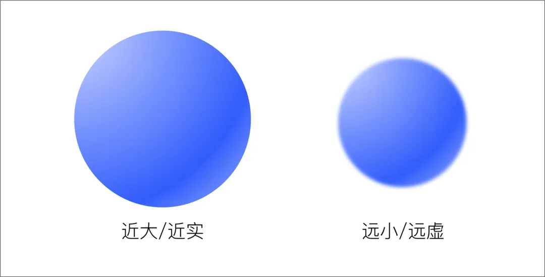 比如,同样一个球,近一点的,肯定是大一些,实一些;远一点肯定是虚一些,小一些。