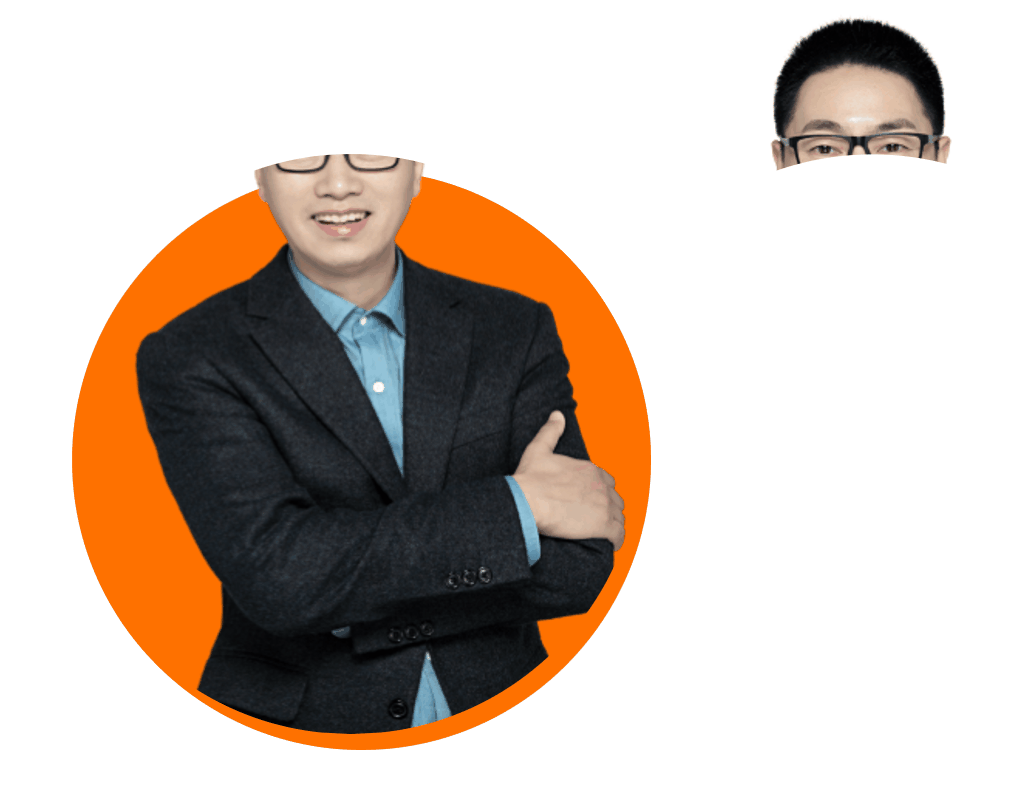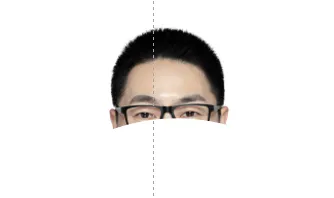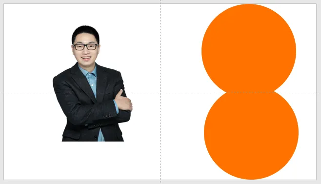 ❸ 将大叔的上半身、上半张脸和圆形背景组装一下,再调整一下形状,穿插效果的人物卡片就做好啦。