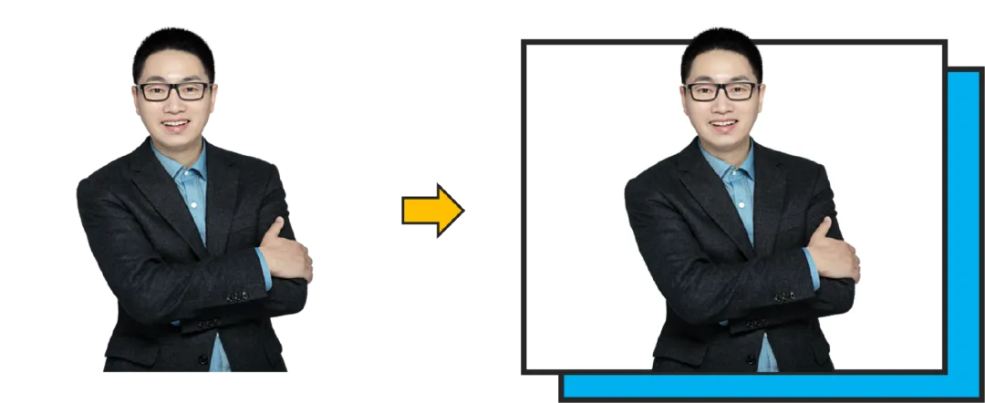 在制作这类人物卡片时,如果是背景形状是矩形这类直角形状的话,直接将抠好的 png 素材加进去然后调整大小就 OK~