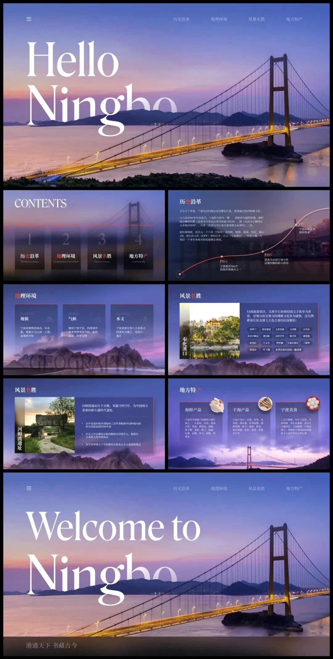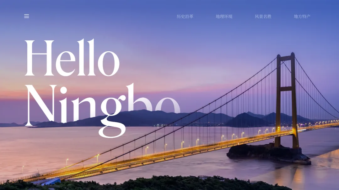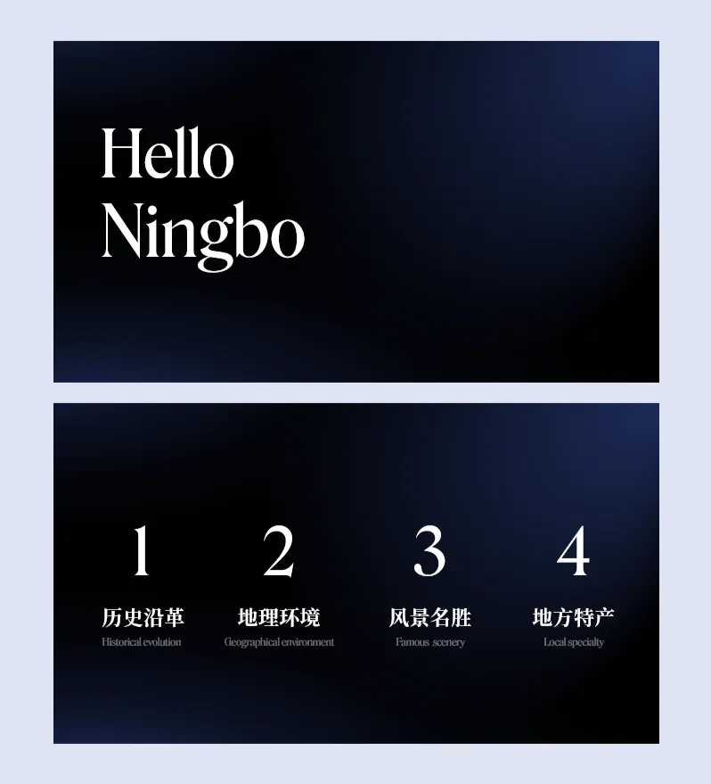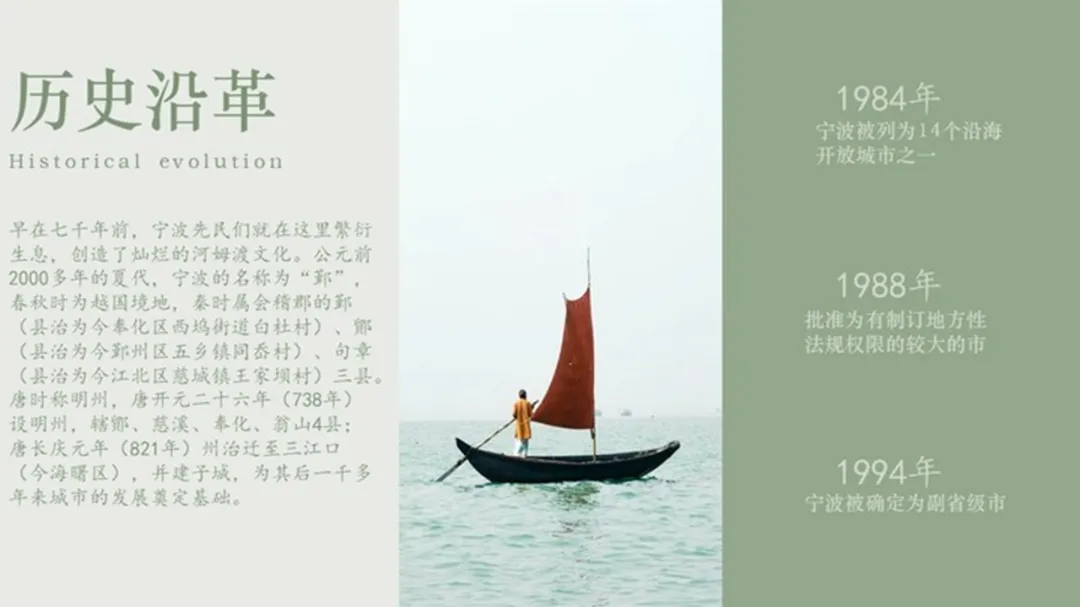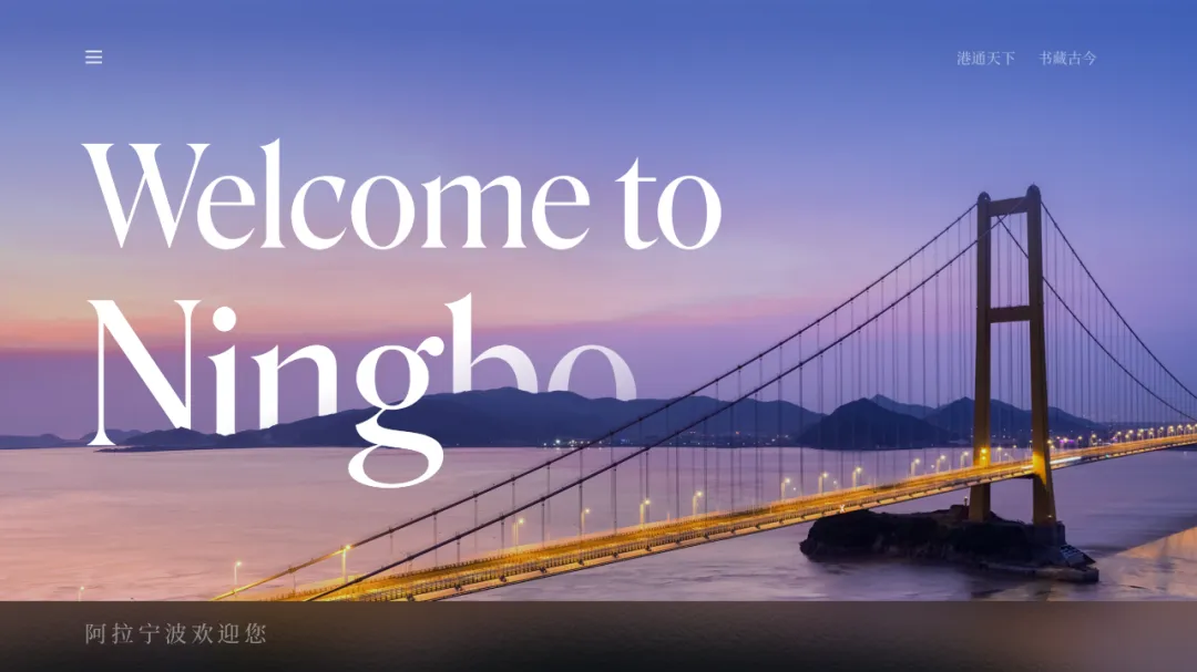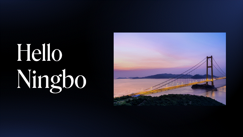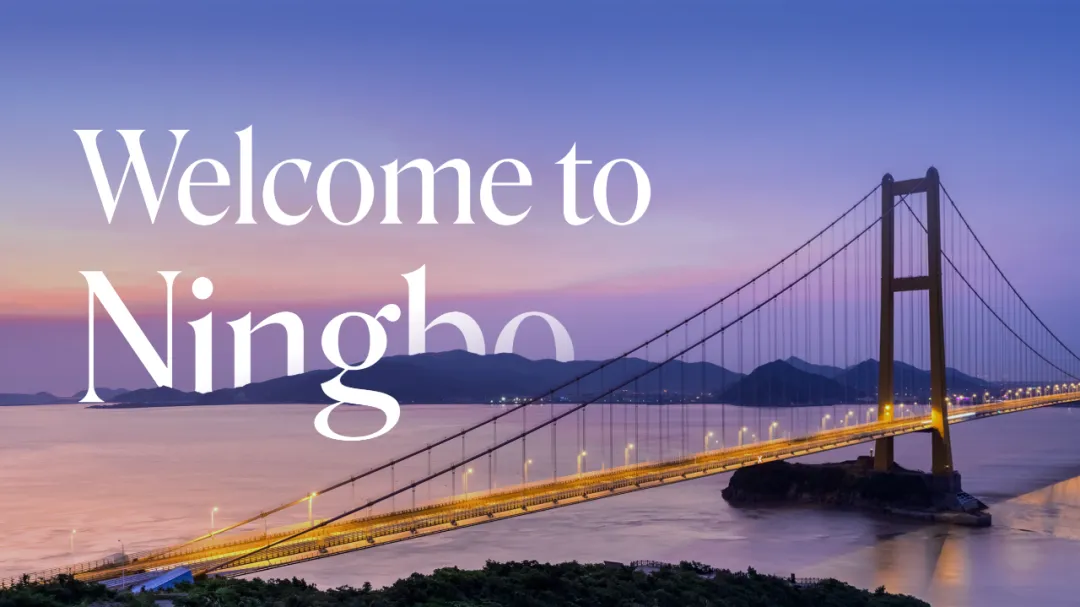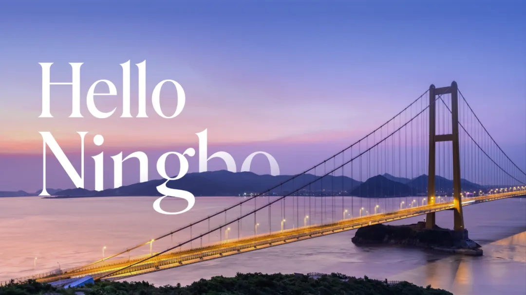 内容讲的是:欢迎大家来到宁波。我们可以使用封面的版式,这样可以首尾呼应: