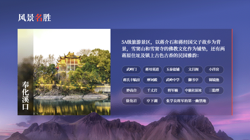 根据文意,可以用一张带有山、水和天空元素的图片作背景: