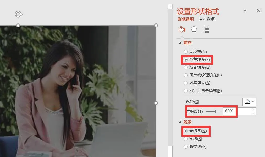 把图片放大至页面全屏,文字就无处容身了,所以需要插入一个矩形,调整透明度后覆盖全部。当矩形的颜色为黑色时,就相当于降低了图片的亮度。